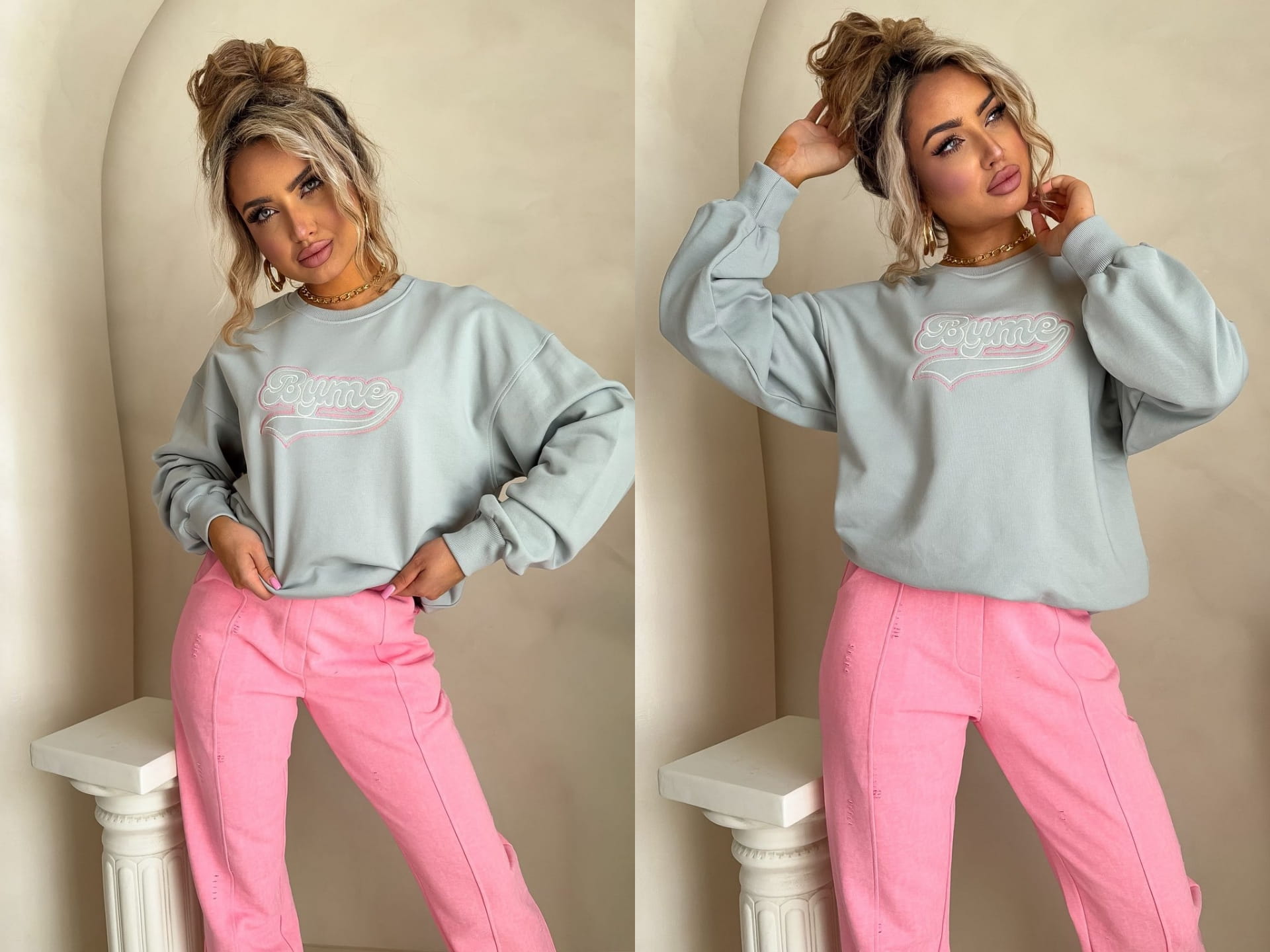 Bluza o swobodnym kroju, wykonana z miękkiej bawełny. Zakładana przez głowę, długie rękawy zapewniają komfort noszenia. Idealna na co dzień – do jeansów, dresów czy szortów. Na środku umieszczony napis “BY ME”.