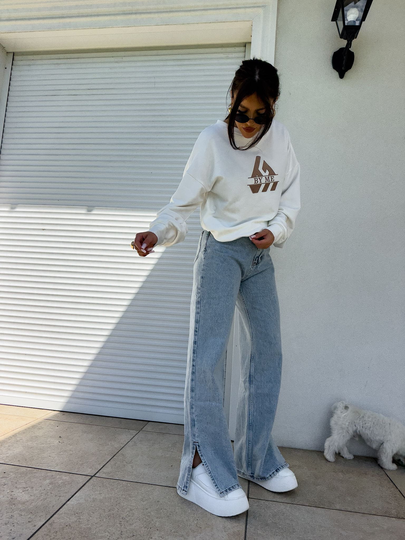 Bluza o prostym, luźnym kroju, z długim rękawem z logowaniem na środku. Wkładana przez głowę.