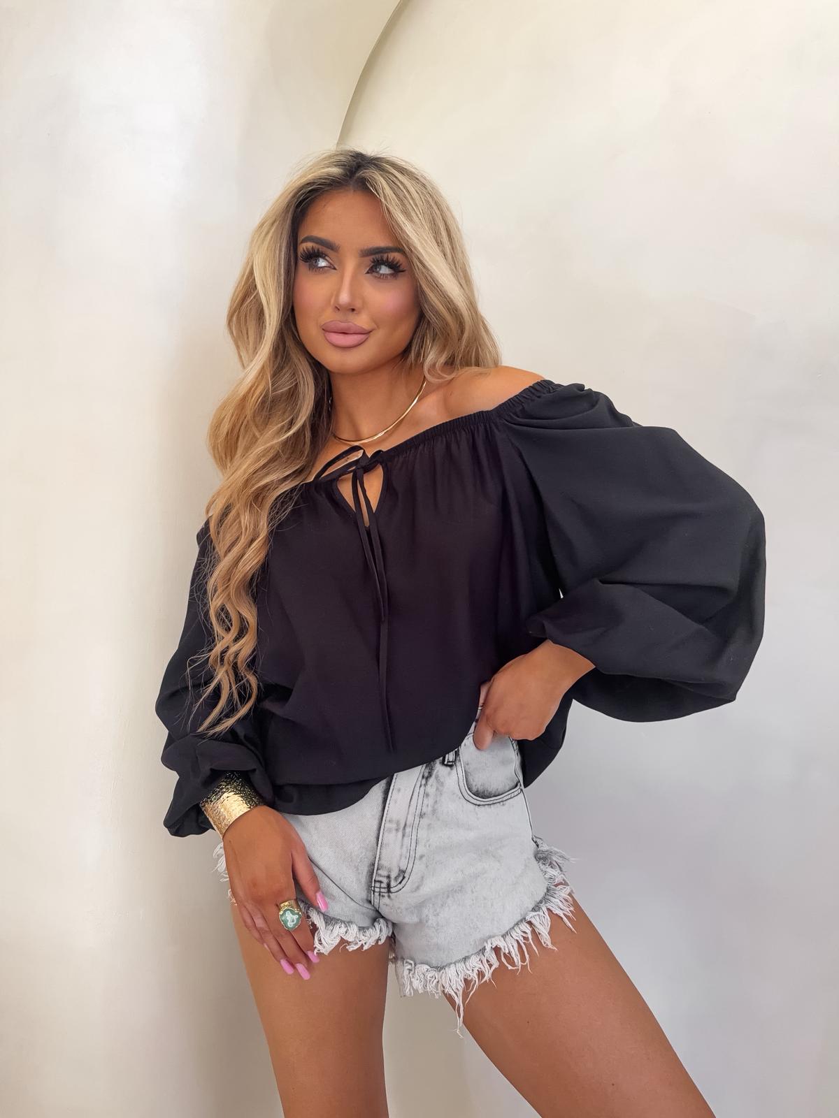 Bluzka z dekoltem typu karo to elegancki i kobiecy model o charakterystycznym, kwadratowym wycięciu. Z przodu znajduje się efektowne wiązanie na troczki, które nie tylko stanowi dekoracyjny detal, ale także pozwala delikatnie regulować głębokość dekoltu. Rękawy zakończone gumką zapewniają wygodę noszenia.