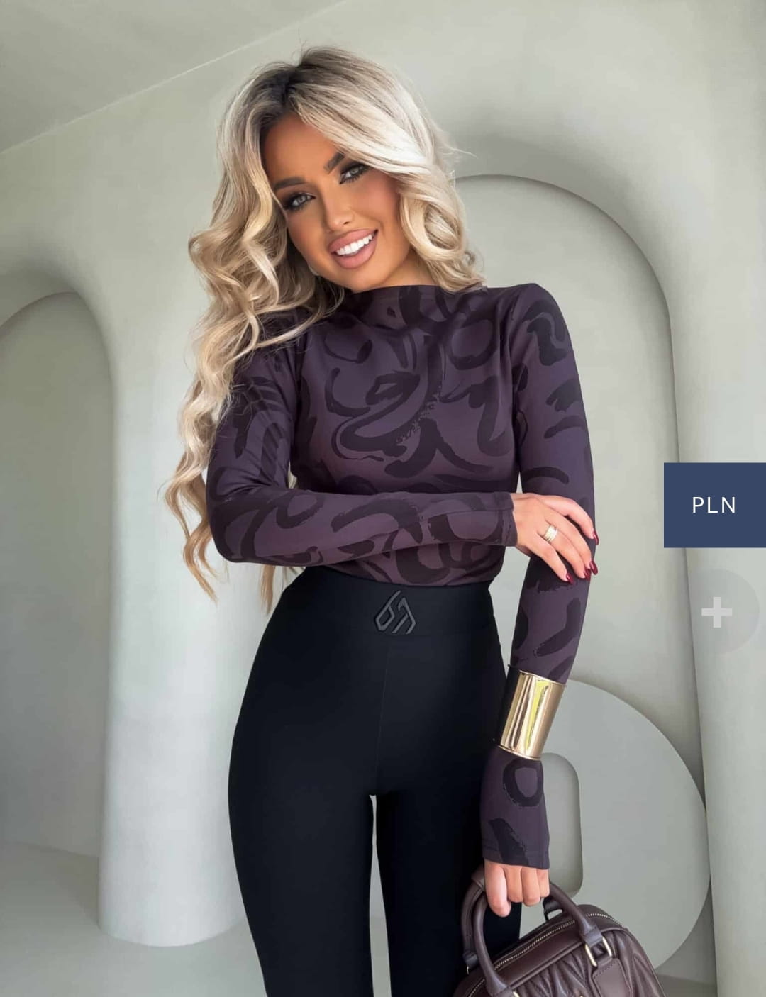 Bluzka Sabrina o dopasowanym kroju sprawdzi się jako baza do wielu różnorodnych stylizacji. Charakteryzuje się rękawem typu long sleeve. Delikatna stójka.