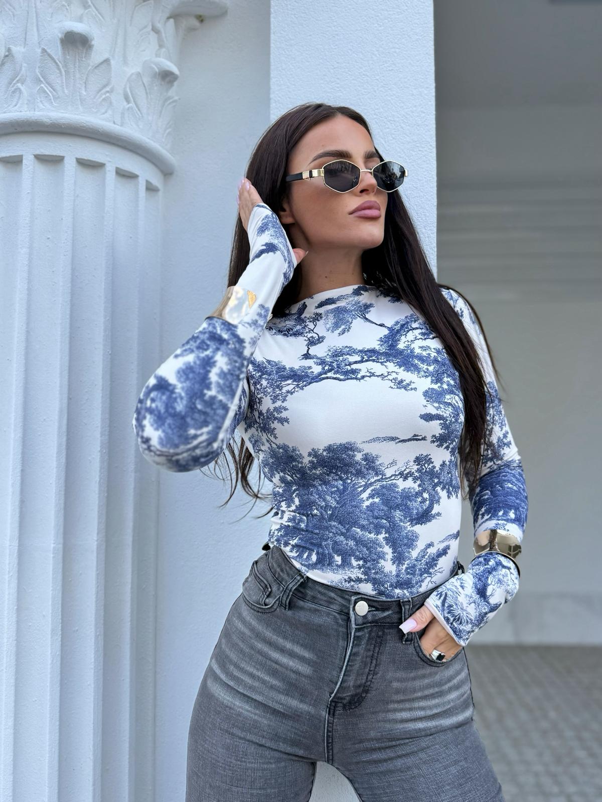 Bluzka SKIN o dopasowanym kroju sprawdzi się jako baza do wielu różnorodnych stylizacji. Przód i tył z delikatną podszewką, dzięki której nic nie prześwituje. Charakteryzuje się rękawem typu long sleeve. Jej krój zagwarantuje komfort i wygodę noszenia. Delikatna stójka.