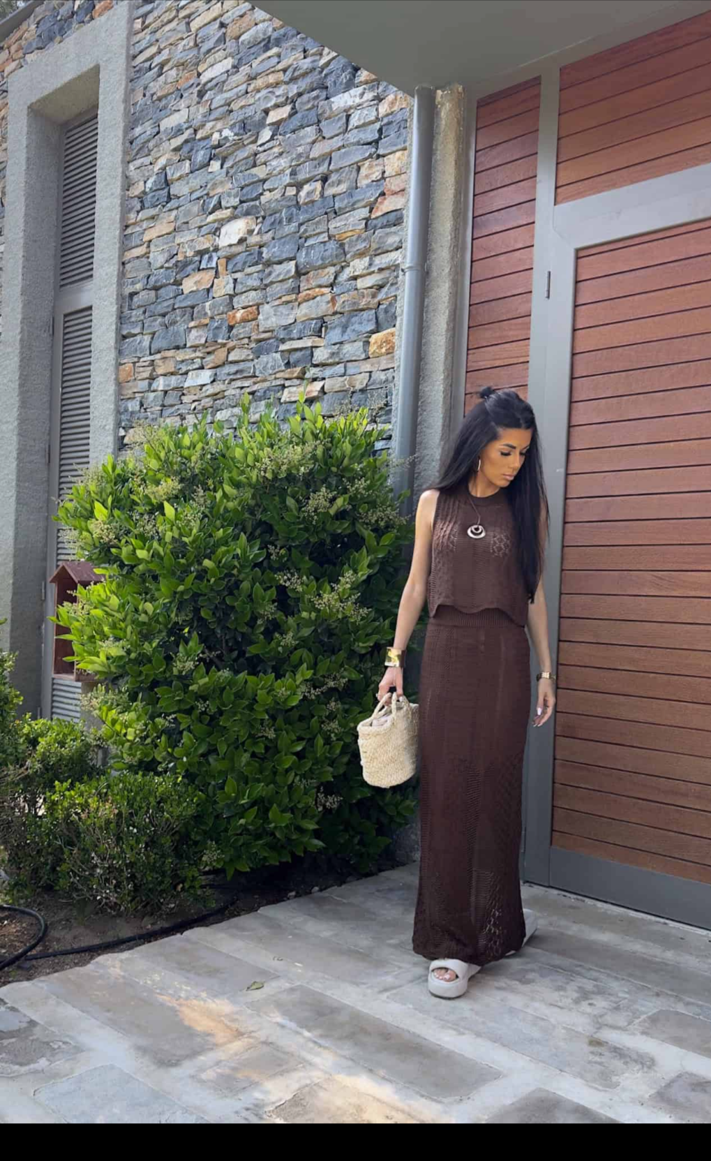 Komplet top ażurowy i spódnica z rozcięciem to idealna propozycja na letnie dni, łącząca elegancję i wygodę. Top wykonany jest z delikatnego, ażurowego materiału, który zapewnia przewiewność i lekkość. Spódnica maxi ma długość sięgającą do ziemi, z rozcięciem, które dodaje jej zmysłowości i lekkości. Gumka w pasie zapewnia wygodne dopasowanie i komfort noszenia. To doskonały wybór na wieczorne wyjścia, wakacyjne spacery czy spotkania z przyjaciółmi.
