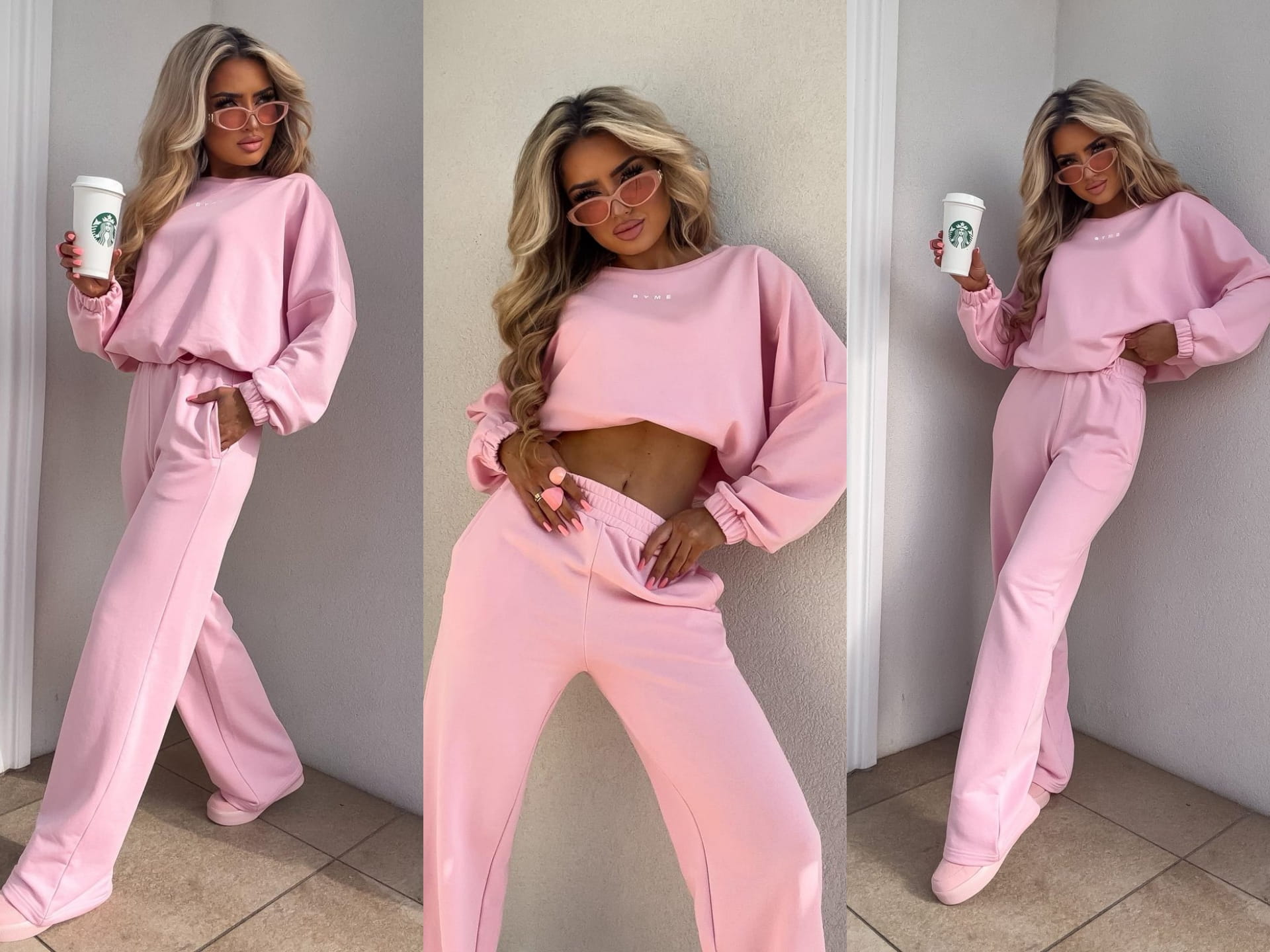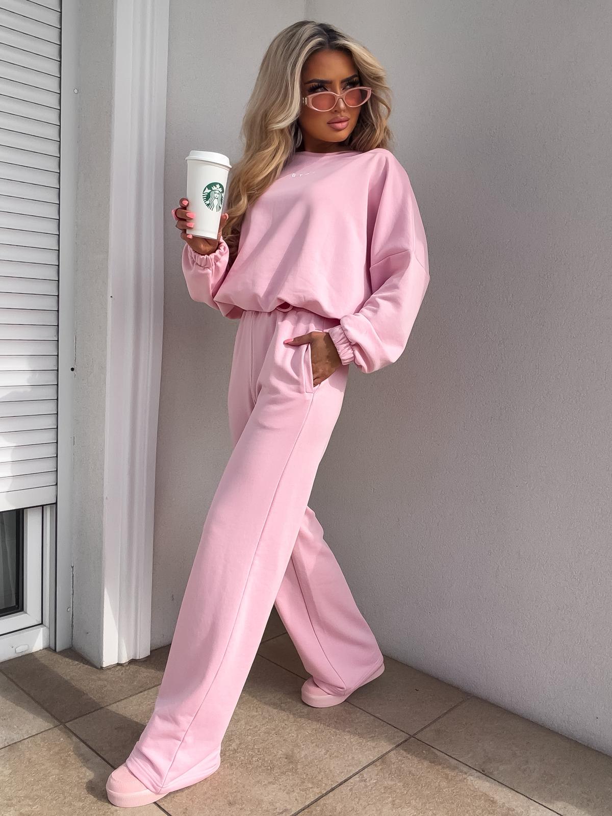 Komplet Sydney składający się z bluzy i spodni. Bluza o prostym, luźnym kroju, z długim rękawem zakończonym gumą. Szerokie spodnie z gumką w pasie
