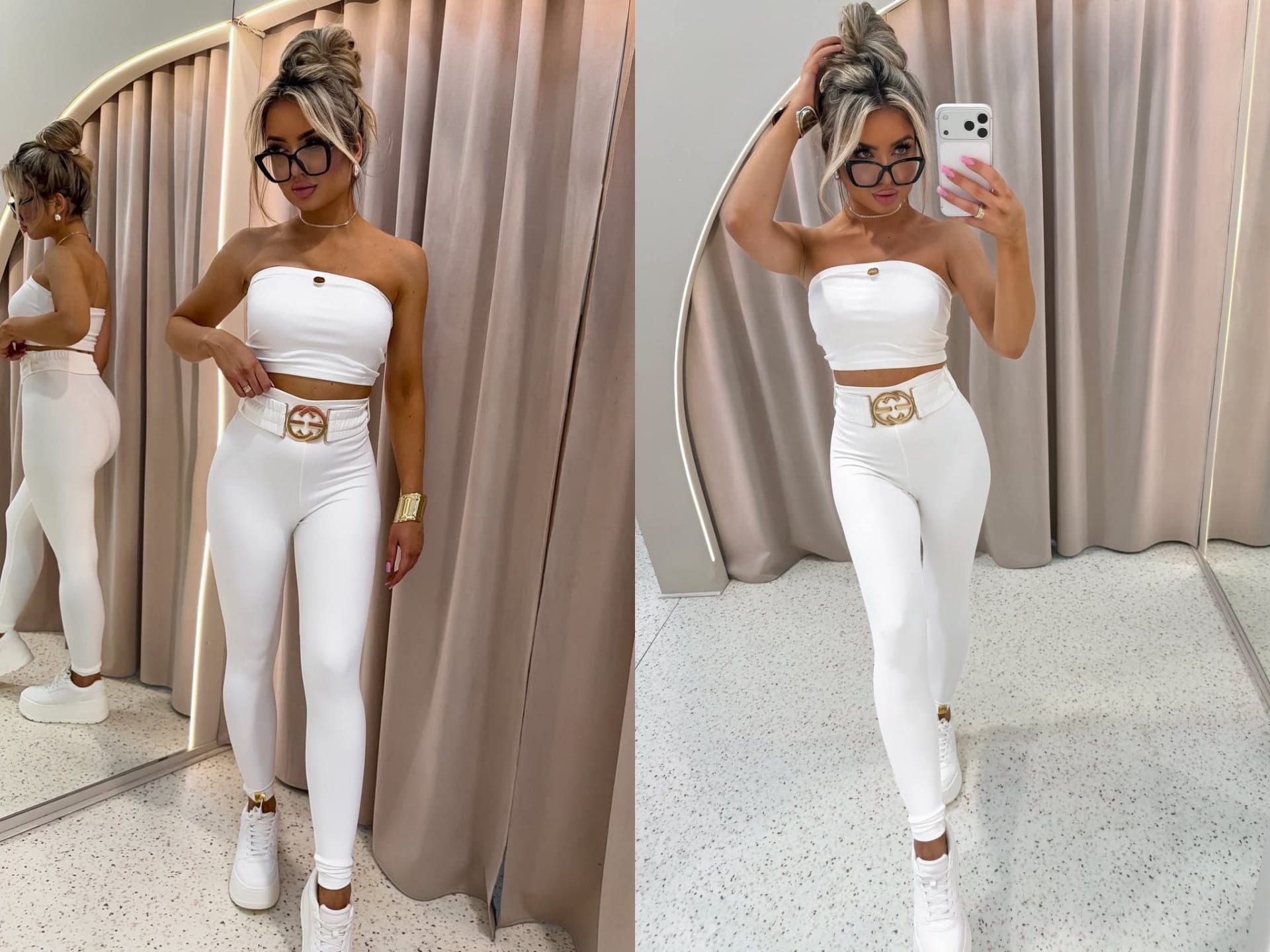 Legginsy BUCKLE la monne ecru