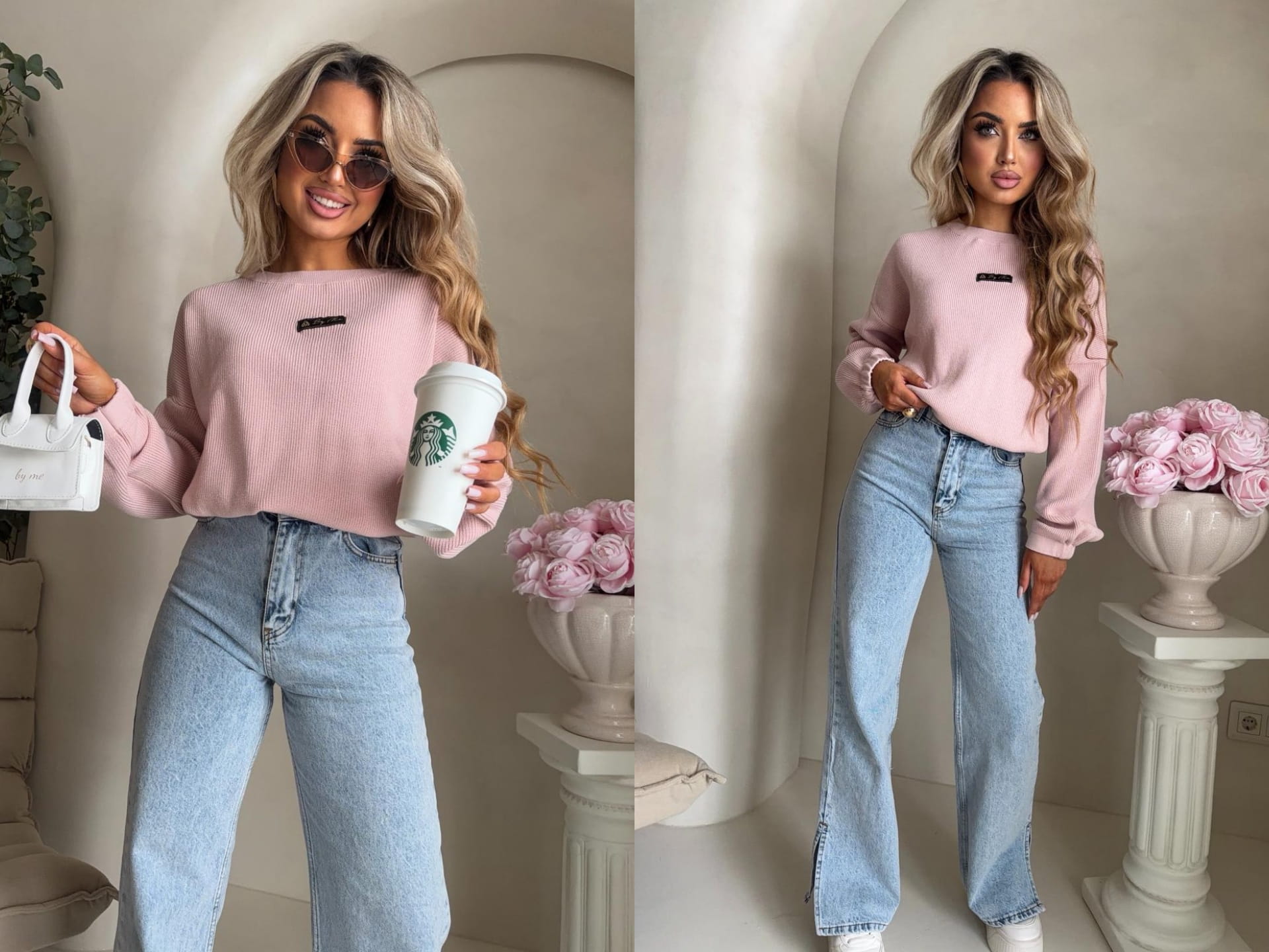 Oversize’owy sweter z długimi rękawami, zakładany przez głowę, wyposażony w troczki umożliwiające regulację długości – możesz nosić go na różne sposoby, dopasowując do swojego stylu.