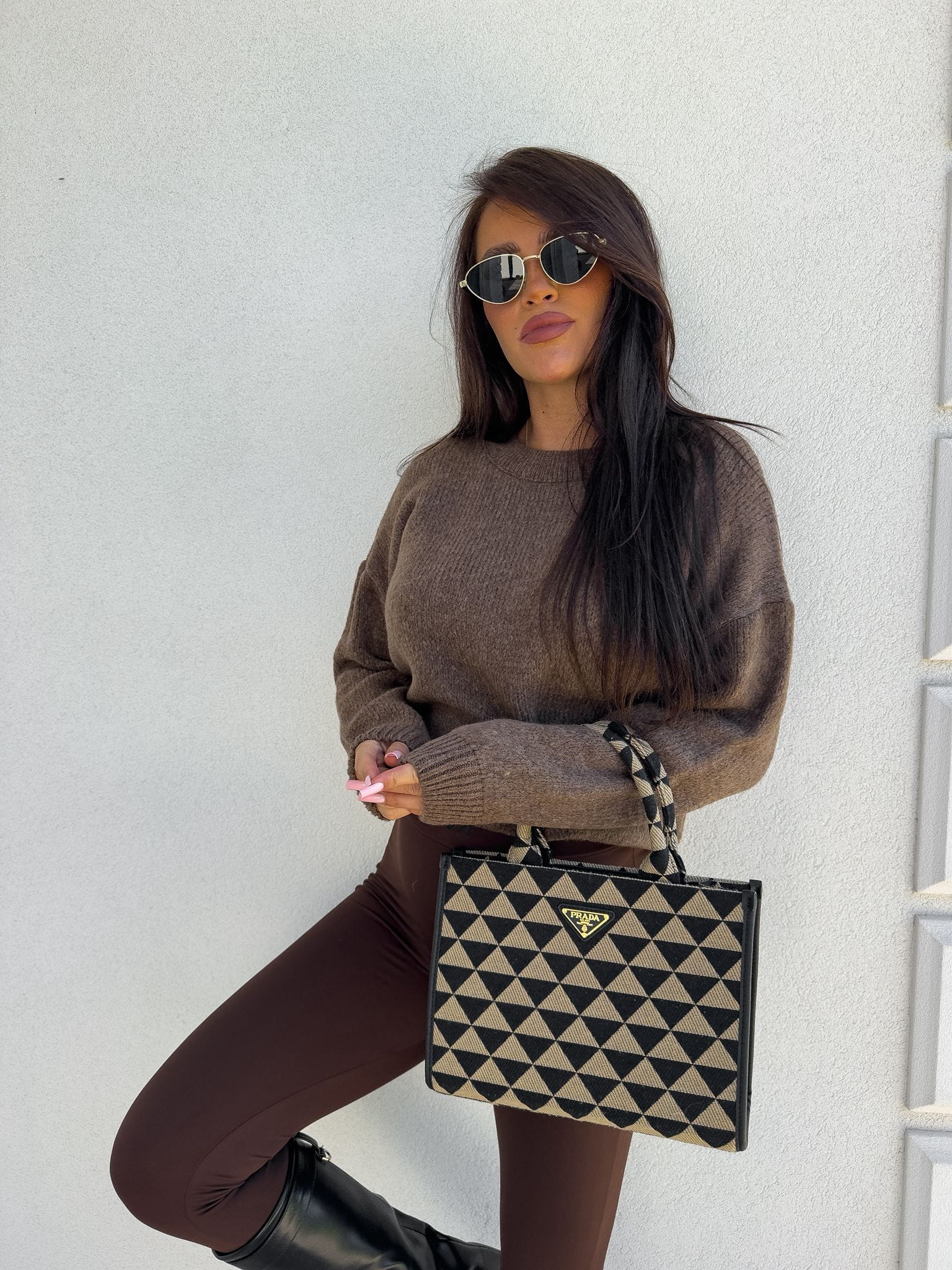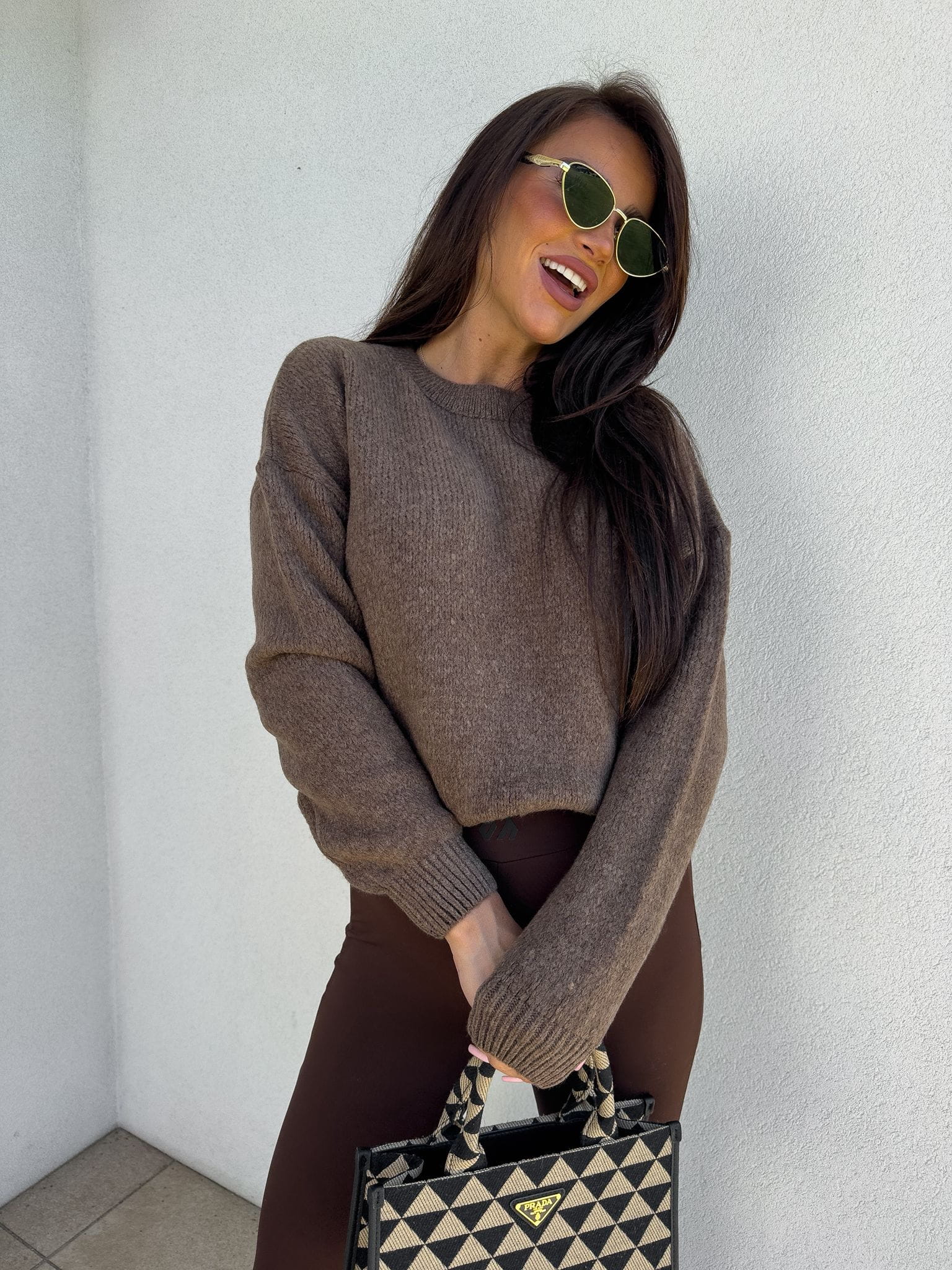 Sweterek Nerys zakładany przez głowę ze ściągaczem przy rękawie i w pasie. Miły, niegryzący materiał.