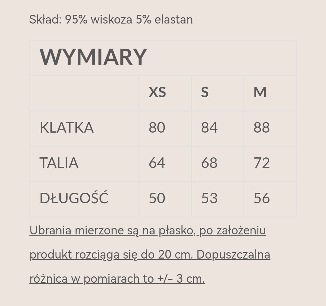 Skład: 95% wiskoza 5% elastan