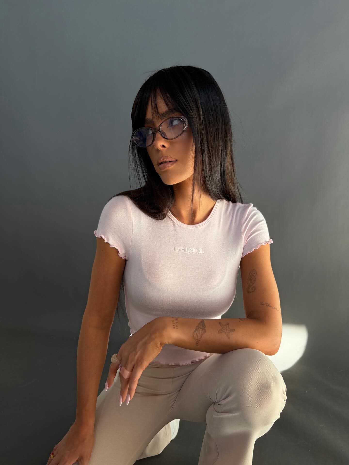 Delikatny top wykonany z bardzo cienkiej, lekkiej wiskozy, która miękko układa się na sylwetce i daje efekt subtelnej „mgiełki”. Dopasowany fason podkreśla figurę, a krótkie rękawy i dół wykończone mereżką nadają całości lekkości i dziewczęcego charakteru. Minimalistyczna forma sprawia, że model świetnie sprawdza się jako baza codziennych stylizacji oraz w zestawach warstwowych.