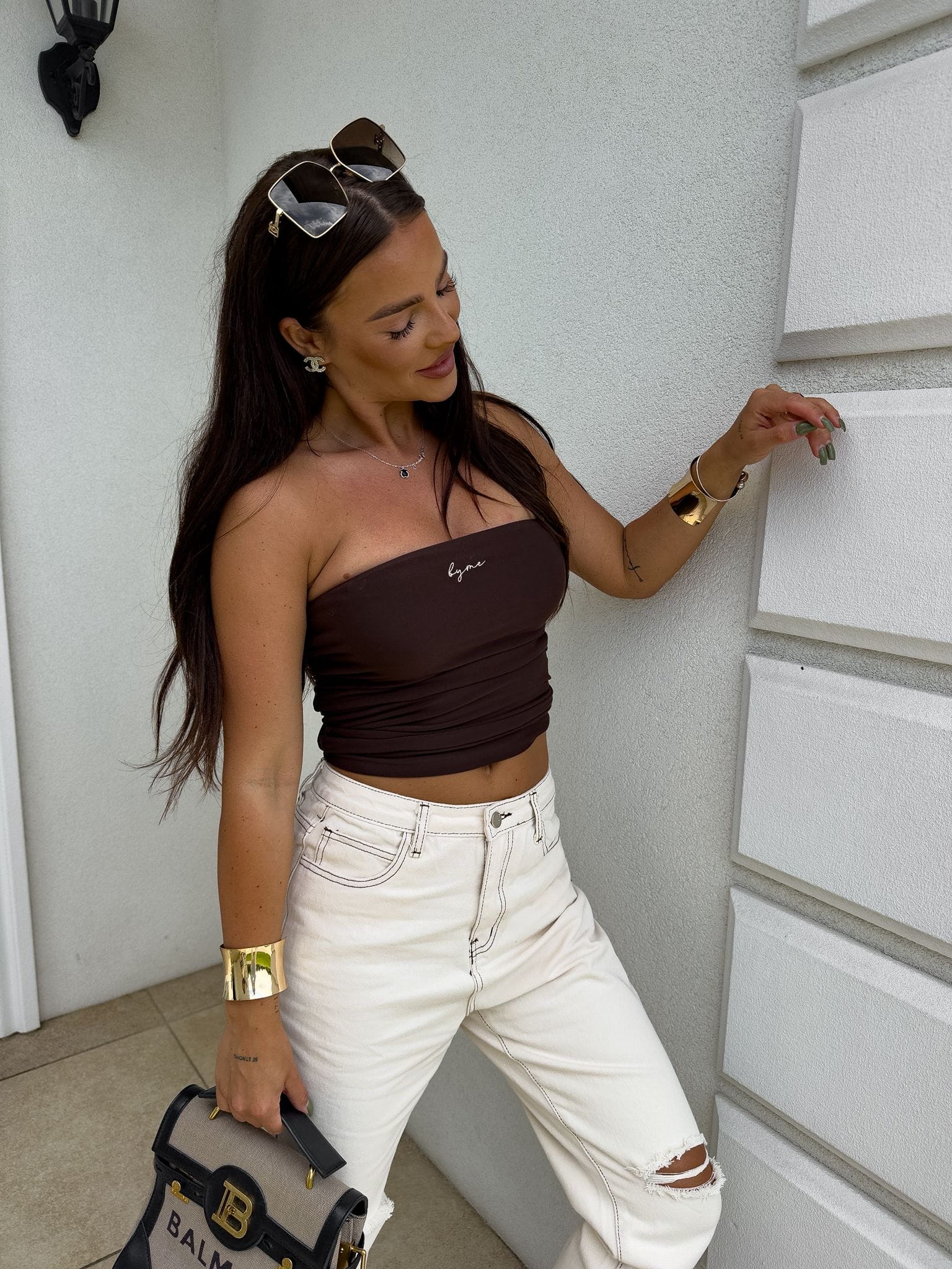 Top logowany bez ramiączek to idealna baza do wielu stylizacji – od codziennych po wieczorowe. Wykonany z elastycznego, idealnie dopasowującego się materiału, gwarantuje komfort noszenia i świetne dopasowanie do sylwetki. Top posiada podwójną warstwę materiału, co zapewnia lepsze krycie i trwałość, a subtelne marszczenia po bokach i z tyłu dodają mu charakteru i delikatnie modelują figurę. Uniwersalny krój sprawia, że będzie świetnie wyglądać zarówno solo, jak i w połączeniu z marynarką czy oversize’ową koszulą.