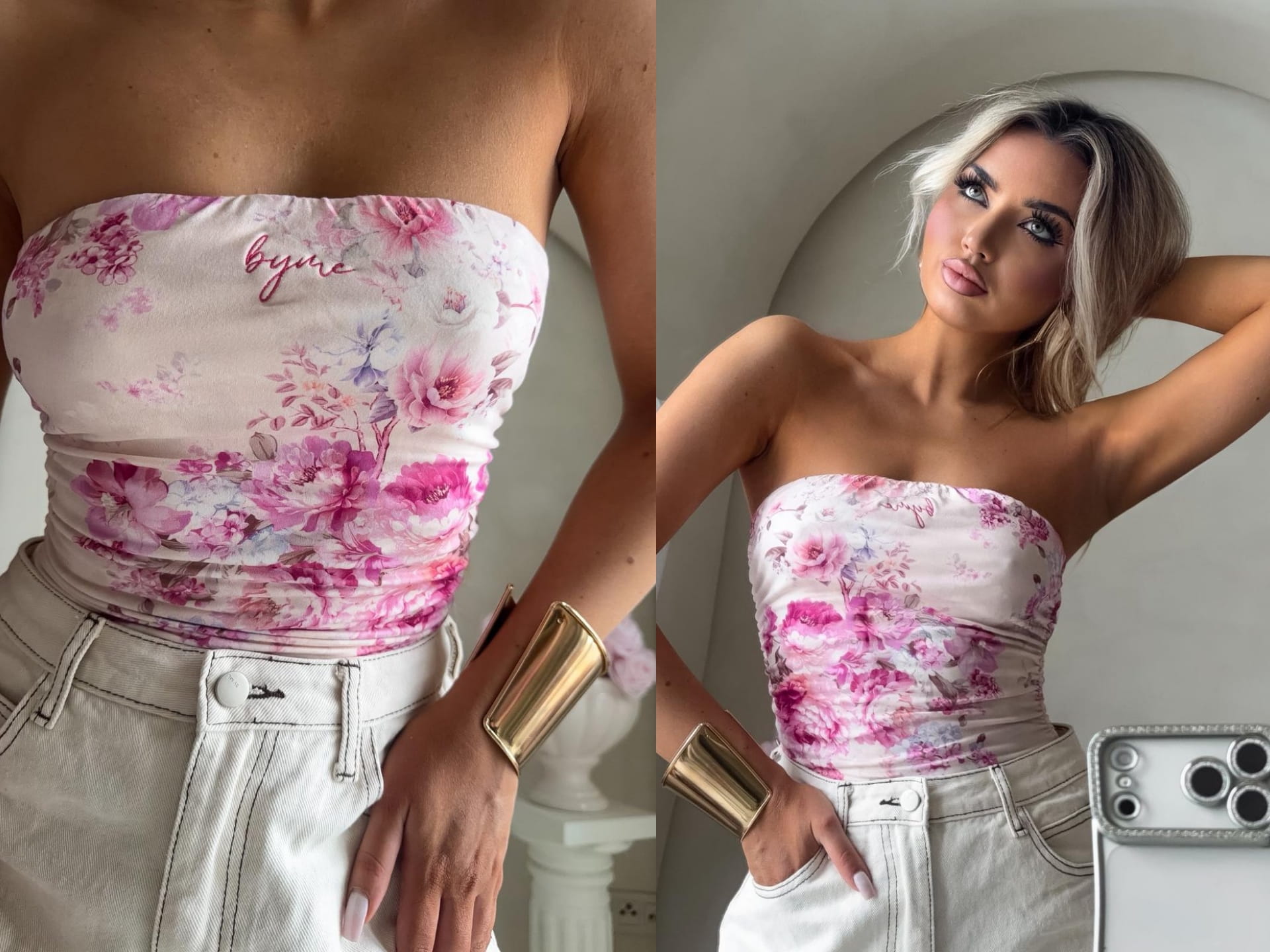 Top logowany bez ramiączek to idealna baza do wielu stylizacji – od codziennych po wieczorowe. Wykonany z elastycznego, idealnie dopasowującego się materiału, gwarantuje komfort noszenia i świetne dopasowanie do sylwetki. Top posiada podwójną warstwę materiału, co zapewnia lepsze krycie i trwałość, a subtelne marszczenia po bokach i z tyłu dodają mu charakteru i delikatnie modelują figurę. Uniwersalny krój sprawia, że będzie świetnie wyglądać zarówno solo, jak i w połączeniu z marynarką czy oversize’ową koszulą.